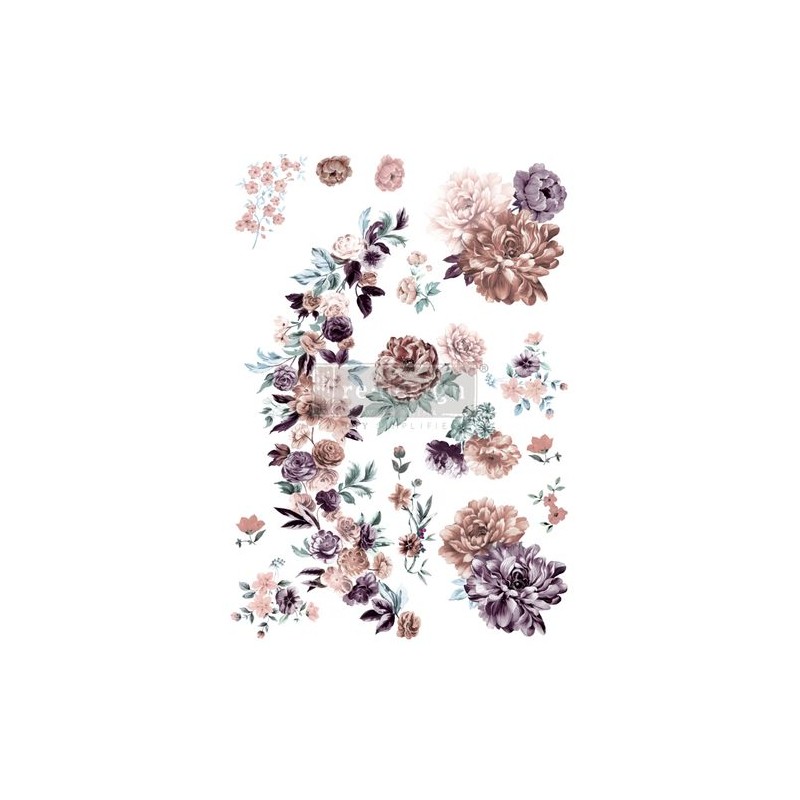 Redesign deco transfer "Burgundy rose garden" decalcomania su fondo trasparente facile da applicare stampato con inchiostro colorato su foglio di acetato. Misure 60,96x29,46 divisibile in più parti per un uso più versatile. Facile da applicare su molteplici superfici muro, mobili, legno, specchio, vetro. Per dare un tocco unico, prezioso e delicato alle vostre creazioni e alla vostra casa.