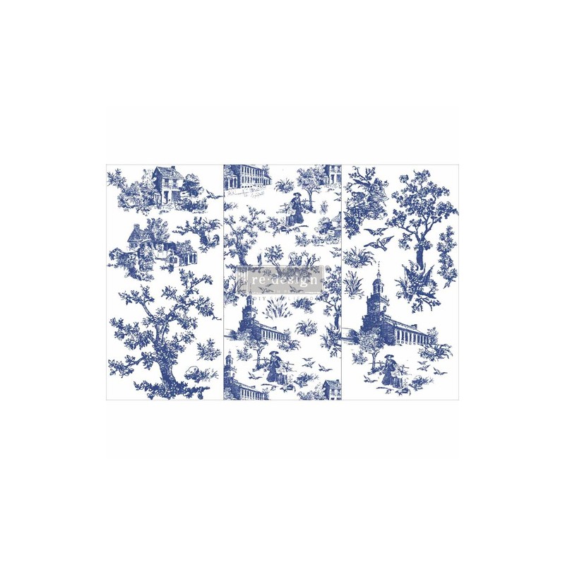 Redesign decor transfers "Toile" decalcomania facile da applicare stampato con inchiostro colorato su foglio di acetato. Misure 15,24x30,48 diviso in 3 fogli. Facile da applicare su molteplici superfici muro, mobili, legno, specchio, vetro. Per dare un tocco unico, prezioso e delicato alle vostre creazioni e alla vostra casa.